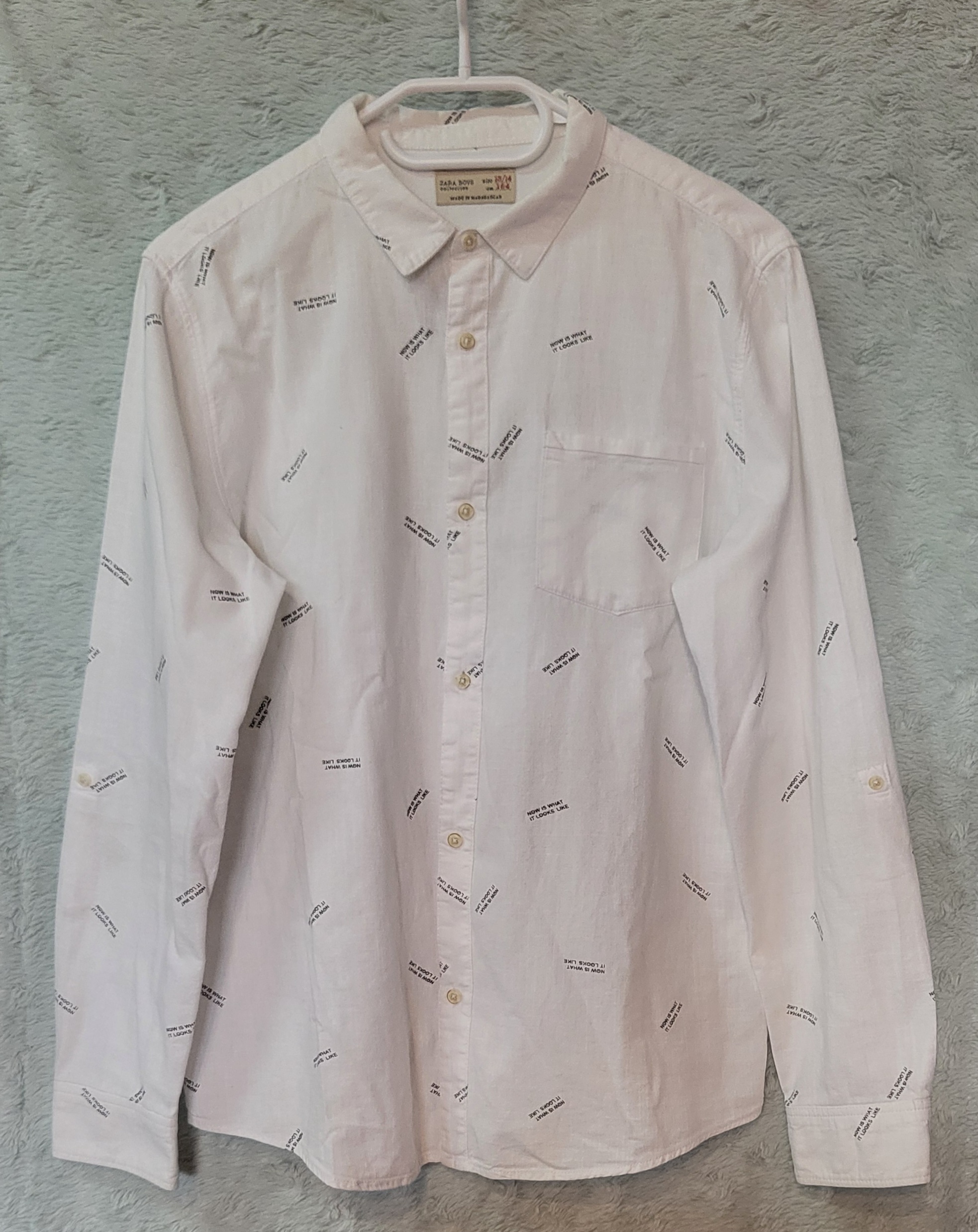 Biała koszula w czarne wzorki